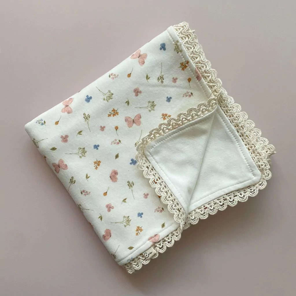 - Manta doble algodón extra suave estampada con tintas al agua y puntilla alrededor